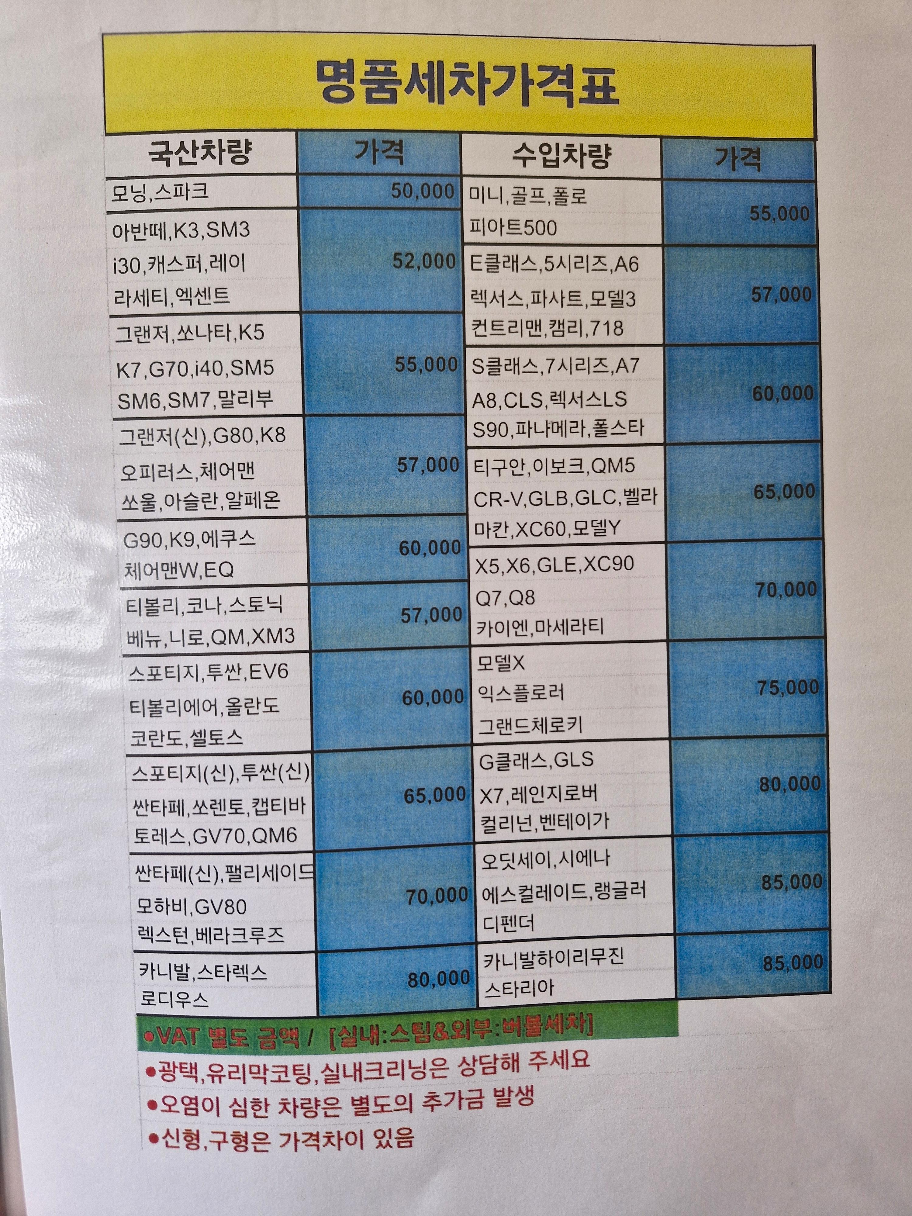 • 손세차, 실내스팀세차, 디테일링, 미백세차