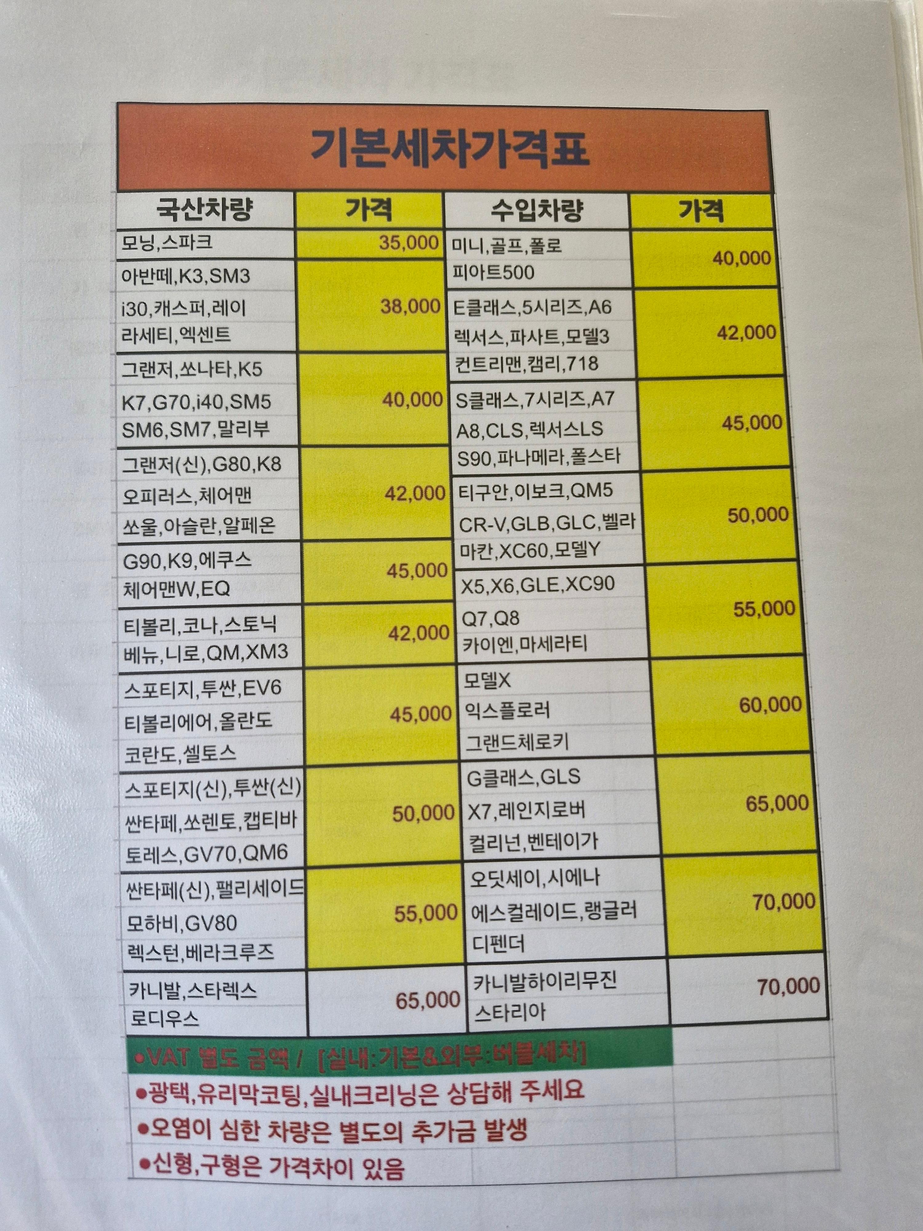 ※ 차이점: 실내 스팀세차 및 토네이도 작업 포함