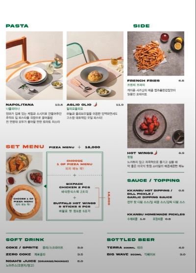 - 메인 피자 1판(가족용): 토핑 양은 넉넉한 편
